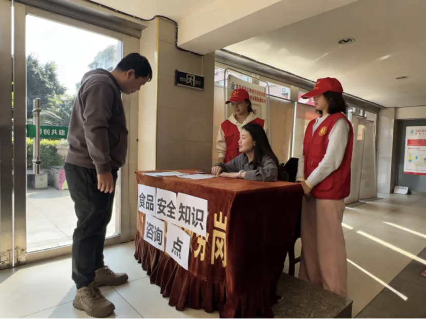 活动采用“宣传+科普+服务”多元模式,学生们结合课堂所学的食品微生物、营养卫生等专业知识,通过现场讲解、发放宣传单、互动答疑等方式,围绕食品安全知识、常见饮食误区、食品选购技巧等内容开展科普,将专业理论转化为居民听得懂、用得上的生活指南,让食品安全理念真正融入日常生活。